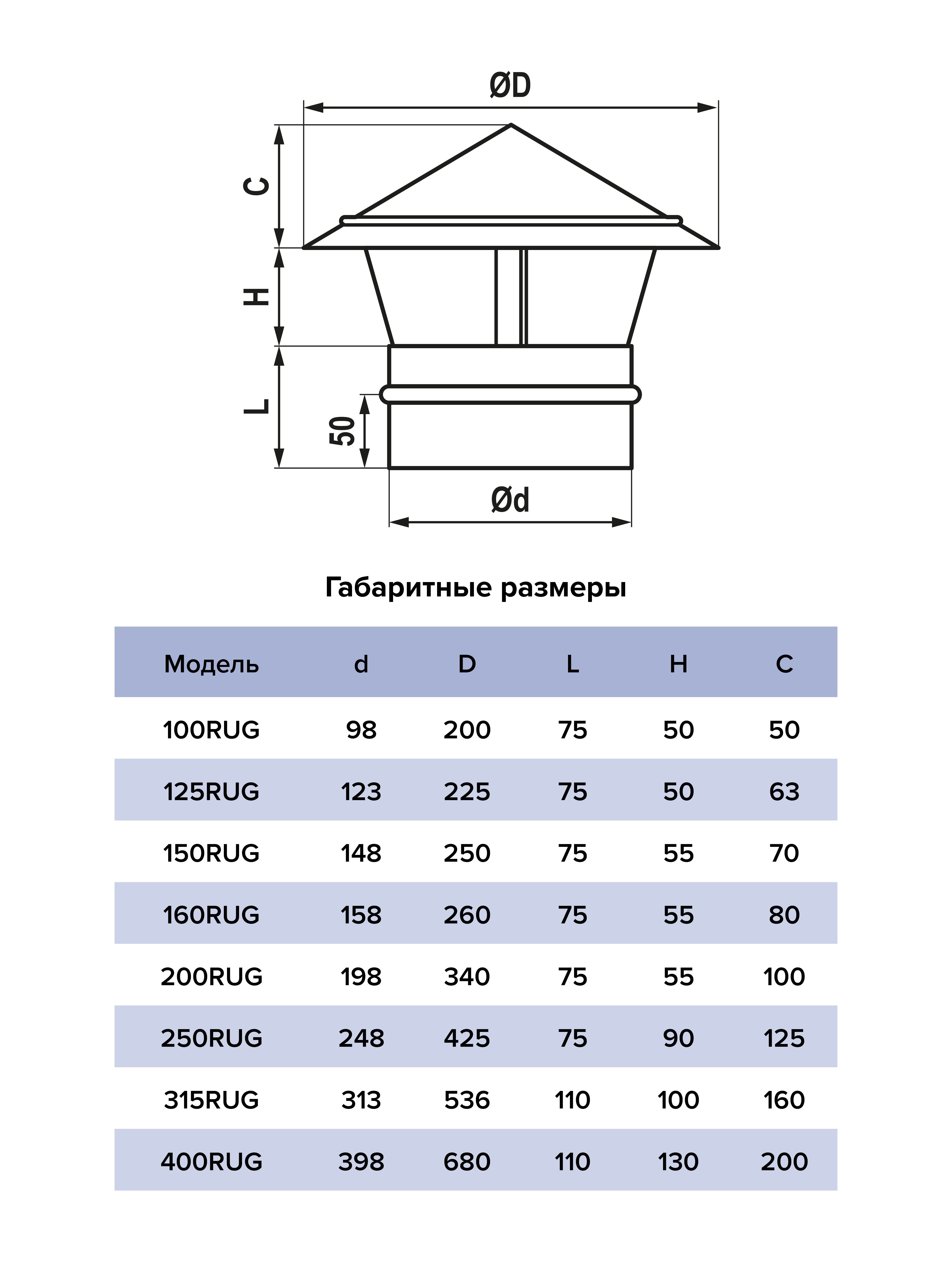 Крышные зонты для круглых каналов RUG изготовлены из оцинкованной стали. Устанавливаются на конечный участок выходящего наружу (на крышу) воздуховода. Монтируются вертикально непосредственно на воздуховод, выходящий за пределы кровли. Препятствуют засорению фильтров и шумоглушителей, повреждению вентиляторов, а также оседанию влаги на стенках воздуховодов и вентиляционной шахты. Предотвращают попадание дождя, снега, града, а также крупного мусора сверху в вентиляционную систему. Возможно изготовление специальных изделий.